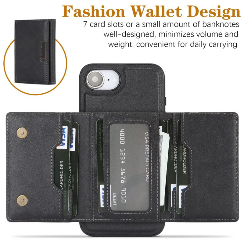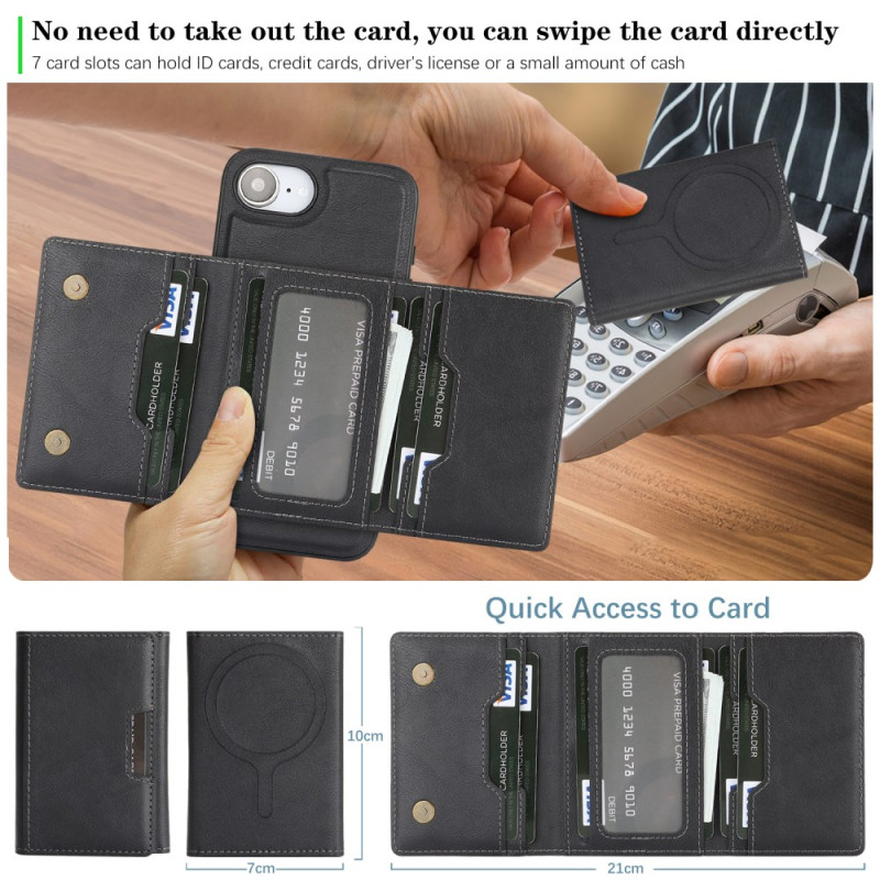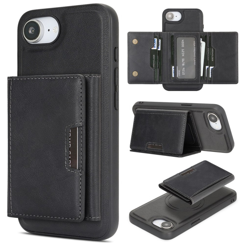 Découvrez l'étui multifonction pour iPhone 17E / 16E : porte-cartes détachable magnétique, support ajustable et protection renforcée. Compatible MagSafe avec aimants haute performance N52. Design 2-en-1 pratique pour ranger cartes et espèces.