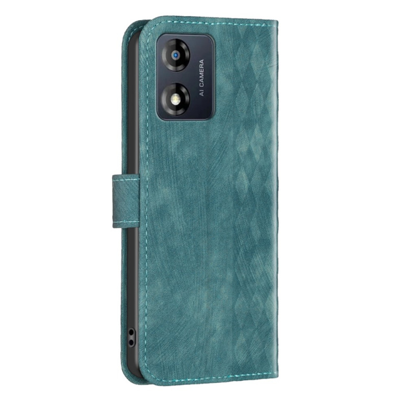 Esta capa em pele com frisos geométricos oferece uma proteção multifuncional para o Moto E13.