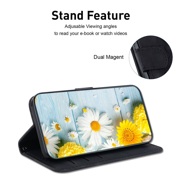 Esta capa não só é bonita, como também é prática graças à sua função de carteira e ao suporte dobrável ajustável.