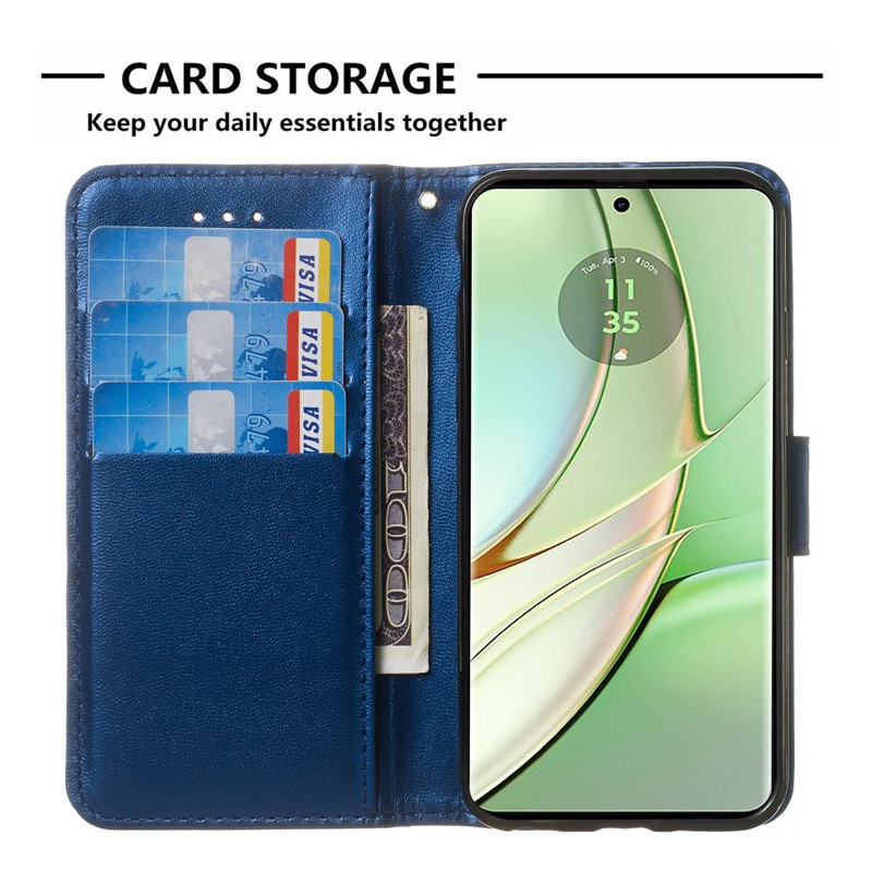 Descubra a capa de carteira para o Motorola Moto G14 4G, fabricada com materiais de qualidade e que inclui uma correia.