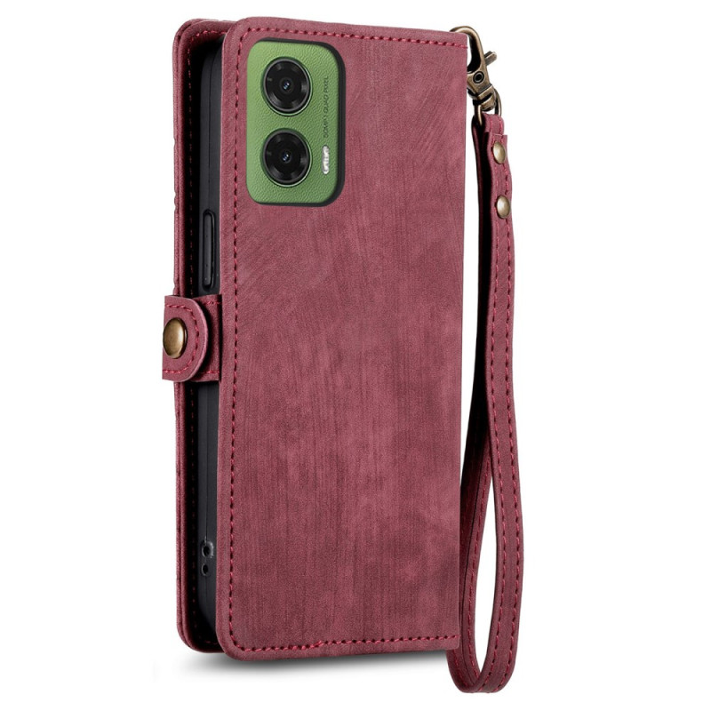 Descubra a nossa elegante e funcional capa de carteira para o Motorola Moto G35 5G. Fabricada em pele PU de alta qualidade com um atraente design geométrico, oferece uma proteção abrangente e funcionalidades práticas, como ranhuras para cartões, um bolso com fecho e uma alça de mão amovível.