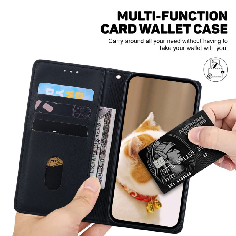 Com uma função de bloqueio RFID, 3 ranhuras para cartões e um suporte integrado, esta capa combina praticidade e estilo para o seu smartphone.