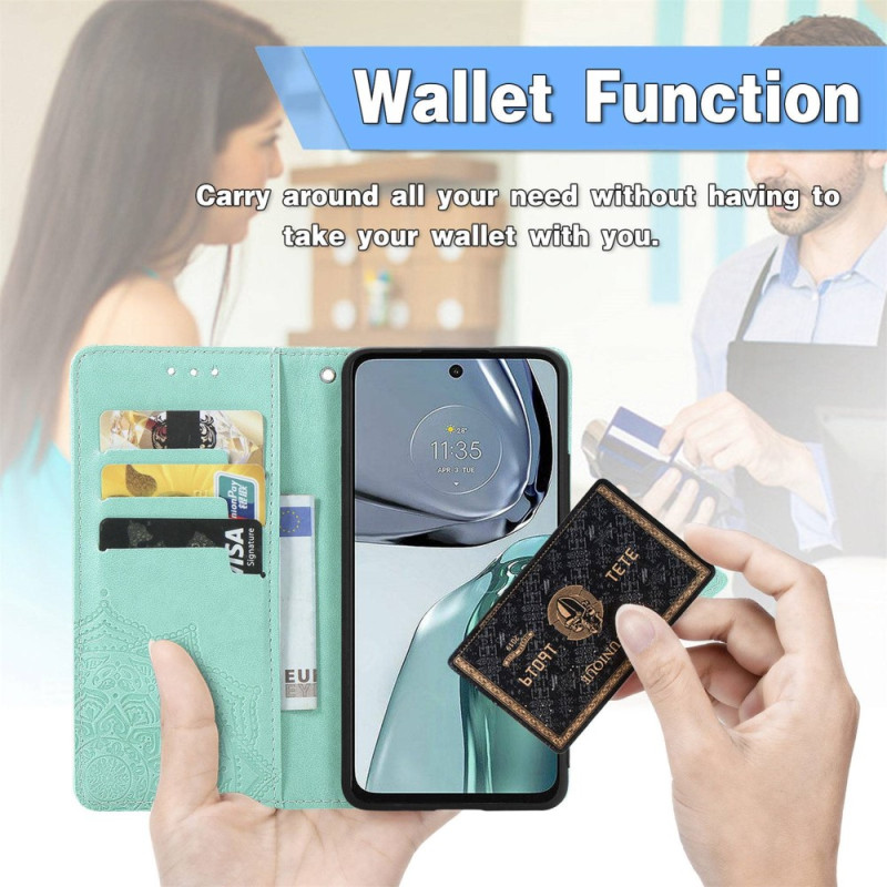capa para o Moto G62 5G com um design de mandala barroca que dá um toque de estilo ao seu telemóvel.