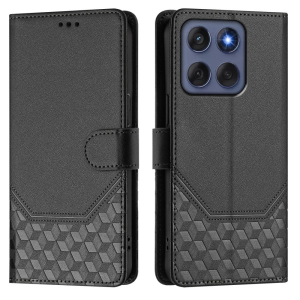 Descubra a nossa elegante capa em pele para o Motorola Edge 60 5G / 60 Fusion 5G. Com um padrão em favo de mel, oferece proteção RFID, funcionalidade de carteira e suporte prático.