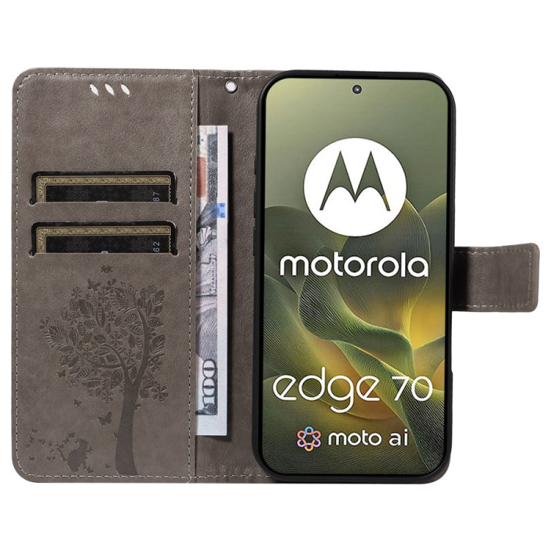 Proteja o seu Motorola Edge 70 5G com estilo com esta elegante capa de carteira. O seu design requintado apresenta um encantador motivo de gato e árvore, enquanto as funcionalidades práticas incluem ranhuras para cartões e um suporte integrado.