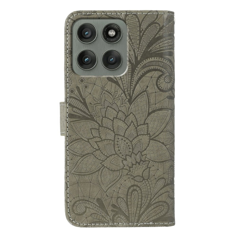 Proteja o seu Motorola Edge 70 5G com estilo com esta capa de carteira com aba com um bonito motivo floral em renda. Combina um estilo requintado e uma proteção robusta com funcionalidades práticas, como um suporte para cartões, um compartimento para dinheiro e um suporte integrado.