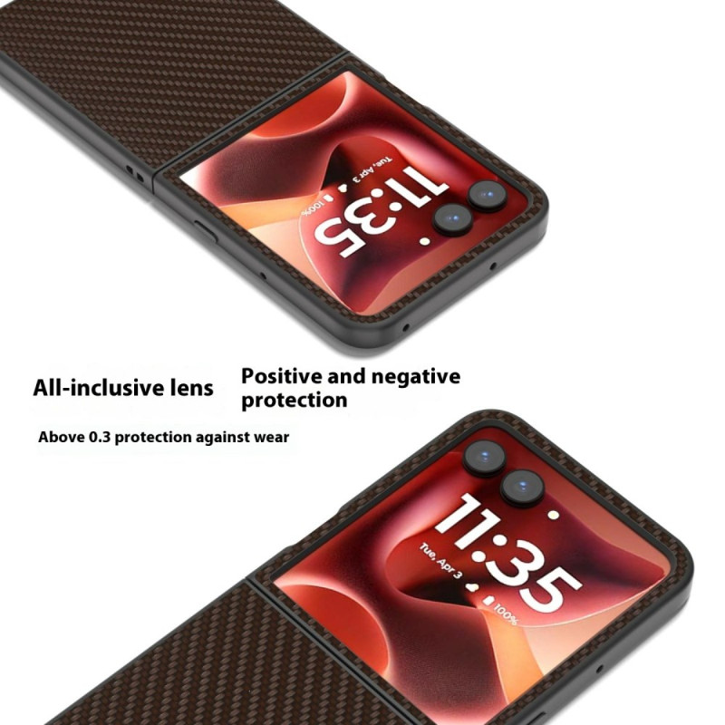 Descubra a nossa capa elegante e protetora para o Motorola Razr 60 Ultra 5G. Fabricada em pele PU e PC de alta qualidade, oferece uma proteção duradoura contra riscos e choques. O seu design texturizado em fibra de carbono dá um toque sofisticado ao seu dispositivo. O design flexível e dobrável mantém o...