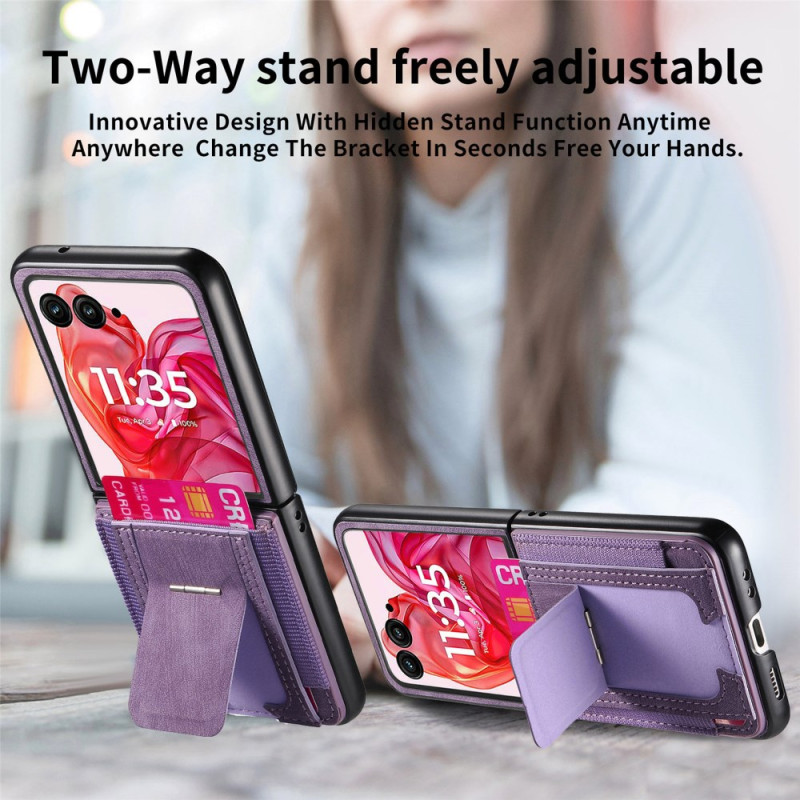Descubra a nossa elegante capa de proteção para o Motorola Razr 60 Ultra 5G. Combinando um estilo retro com uma funcionalidade moderna, esta capa em pele PU oferece proteção de nível militar, um suporte integrado para visualização em mãos livres e um prático suporte para cartões.