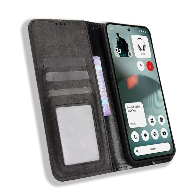 Proteja o seu Nothing Phone (3a) Lite 5G com estilo com esta capa de carteira em pele PU retro. Com várias ranhuras para cartões, um suporte ajustável e fecho magnético automático, combina o estilo vintage com a funcionalidade.