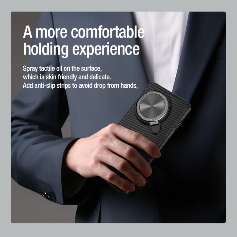 Descubra o suporte NILLKIN Camshield para OnePlus 13. Fabricado em PC+TPU, oferece uma proteção óptima com almofadas de ar que absorvem os choques.