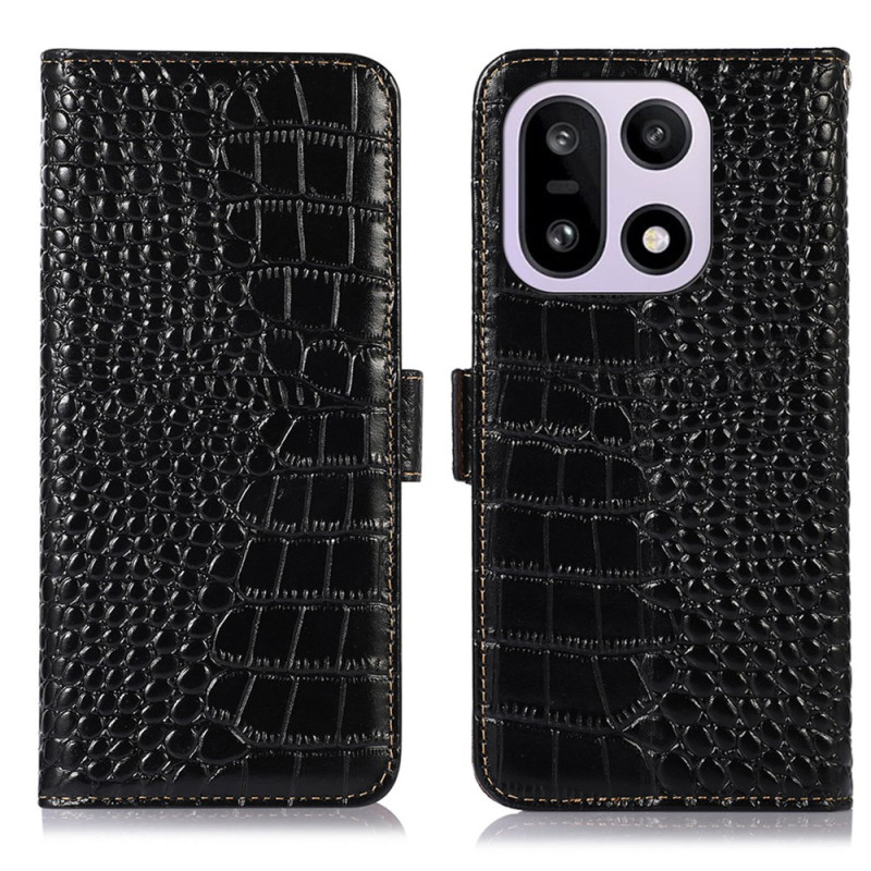 Proteja o seu OnePlus 15 5G com estilo com este capa para carteira em pele genuína com textura de crocodilo. Com tecnologia de bloqueio RFID, 3 ranhuras para cartões e um suporte ajustável, combina estilo e funcionalidade.