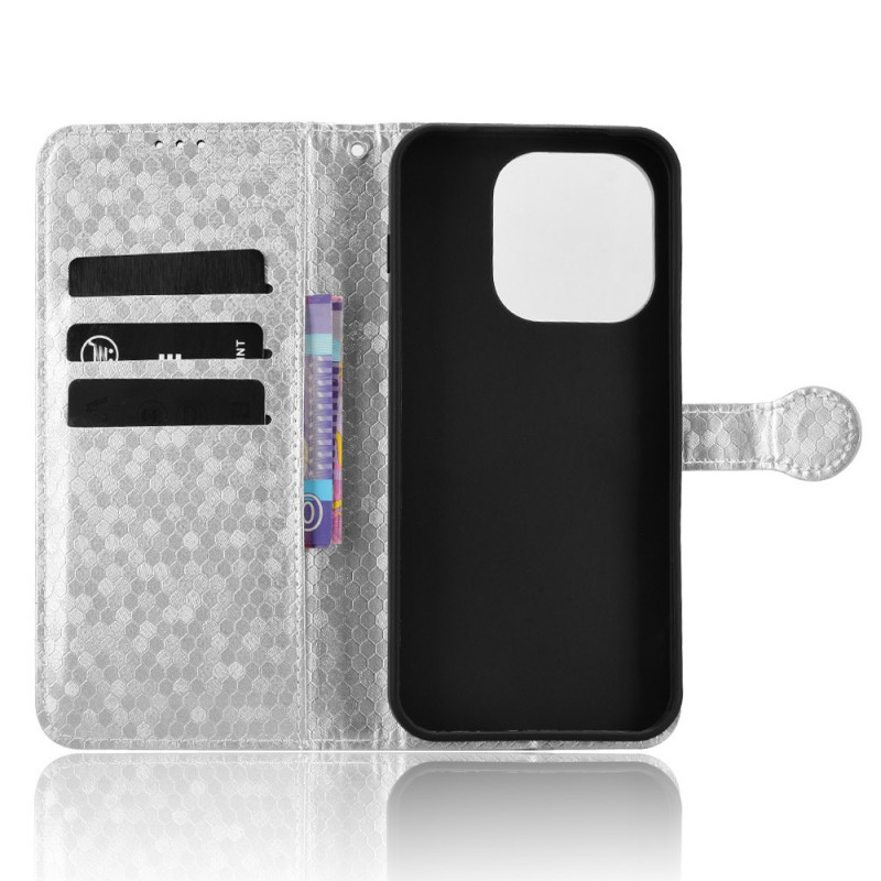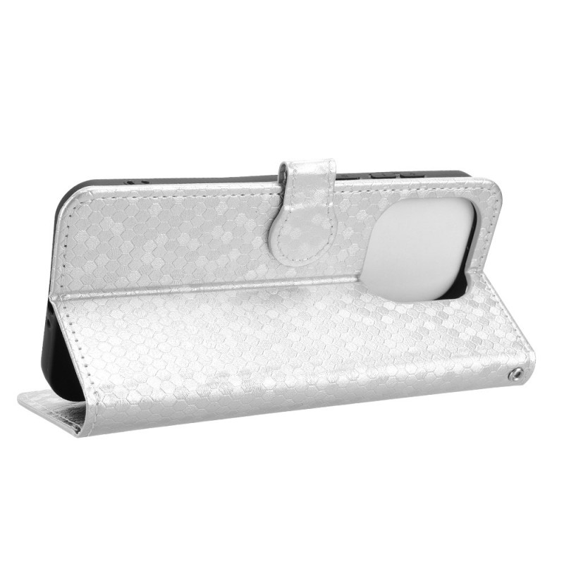Capa elegante para carteira para o OnePlus 15 5G com padrão de pontos texturados. Inclui ranhuras para cartões, suporte multi-ângulo ajustável e uma prática correia de pulso. Protege o seu telemóvel, proporcionando funcionalidade e estilo no dia a dia.