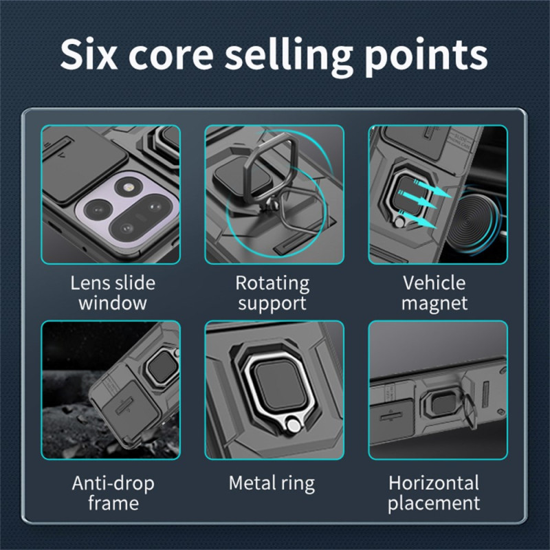 Proteja o seu OnePlus 15 5G com esta capa robusta que inclui um suporte rotativo integrado e uma tampa deslizante para a lente. Design anti-choque com rebordos elevados para uma proteção óptima do ecrã e da câmara. Fácil acesso a todas as funções.
