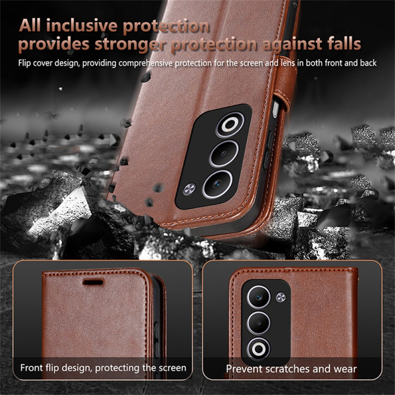 Proteja o seu Oppo A5 5G com estilo com esta capa multifunções em pele PU de primeira qualidade. Com várias ranhuras para cartões, um bolso para dinheiro e um suporte integrado, combina elegância e praticidade para uma utilização quotidiana.