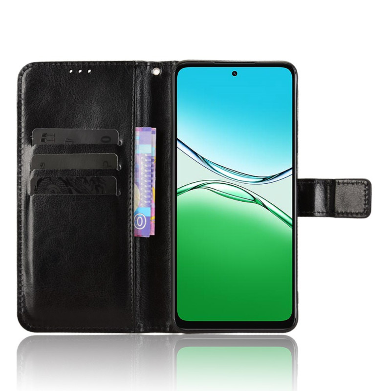 Capa elegante em pele PU de qualidade superior com textura de cavalo louco para o seu Oppo A5 5G / 4G. Inclui 3 ranhuras para cartões, um compartimento para dinheiro e uma prática correia de mão. Fecho magnético seguro e função mãos-livres.