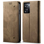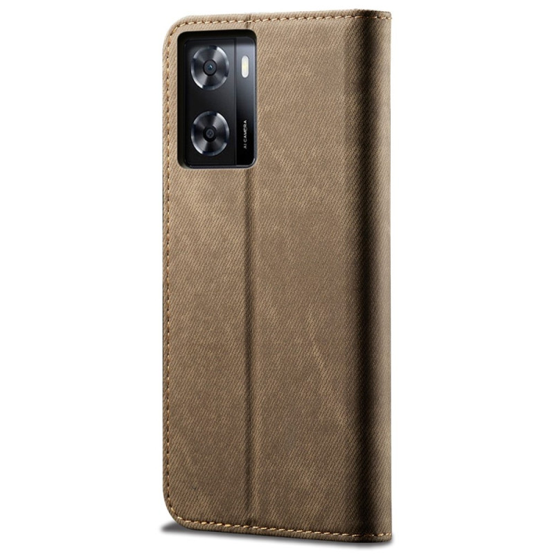 Proteja o seu Oppo A77 5G / A57 / A57 4G / A57s de uma forma pessoal com esta capa flip em ganga resistente às intempéries.