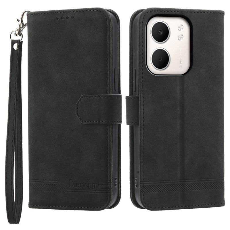 Descubra a capa tipo carteira DIERFENG para o Oppo A5x, que combina elegância e funcionalidade. Com os seus padrões de linhas gravadas, o revestimento interior flexível, os compartimentos para cartões e dinheiro e a prática correia de mão, esta capa oferece proteção e conforto todos os dias.