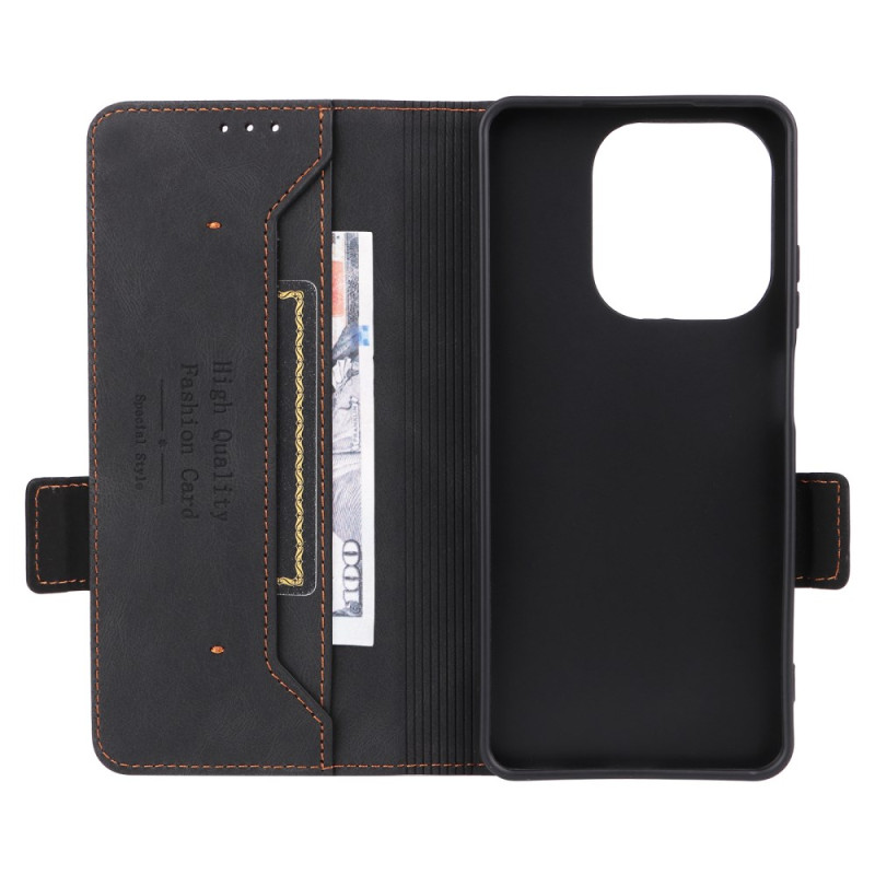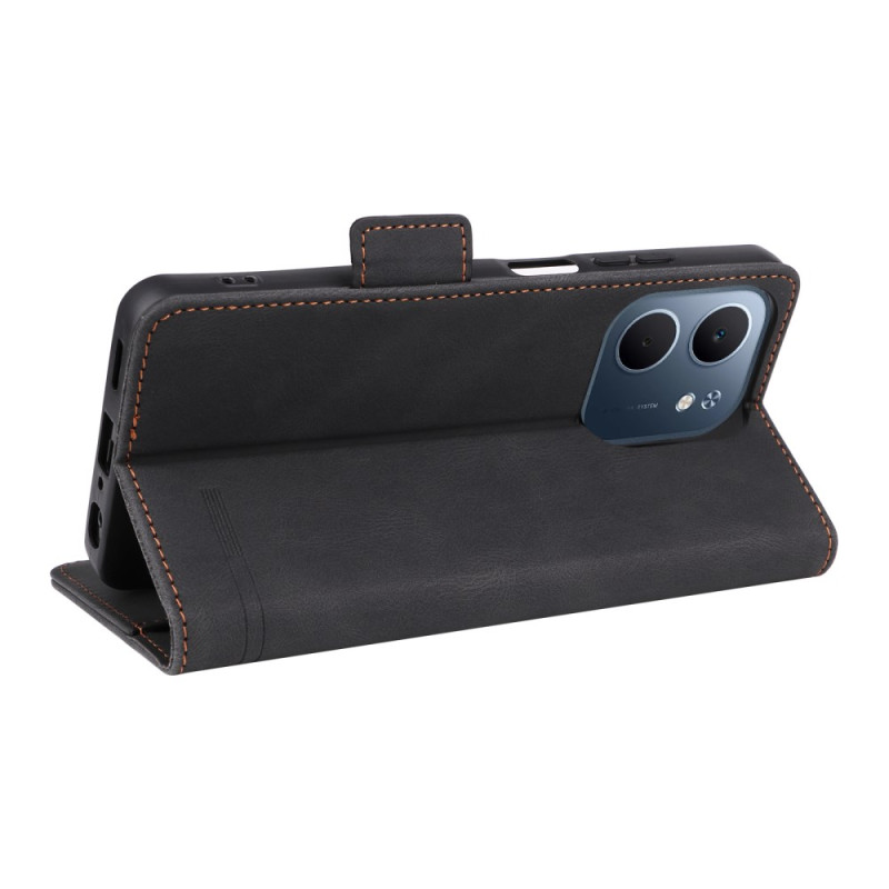 Protégez votre Oppo A5X 4G avec élégance grâce à cet étui portefeuille en cuir premium. Doté de fentes pour cartes, d'une poche pour espèces et d'une décoration métallique raffinée, il combine style et fonctionnalité. Son support réglable offre un confort optimal.