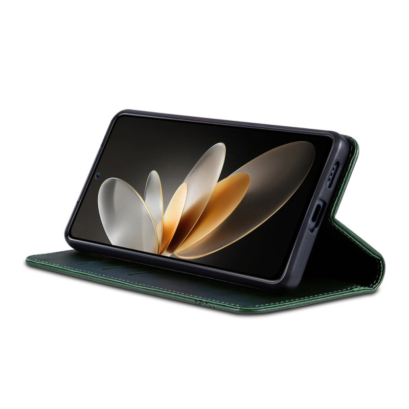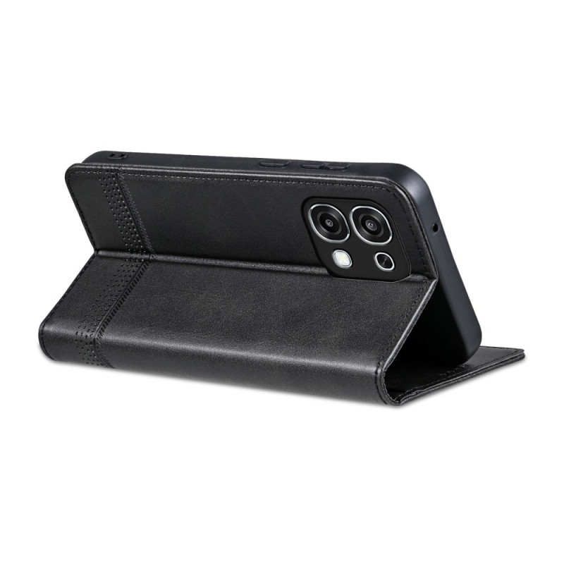 Elegante capa de couro PU para carteira para o Oppo A6 Pro 5G com função de suporte, porta-cartões integrado e fecho magnético. Proteção total com revestimento interior em TPU resistente e rebordos elevados para proteger a câmara.