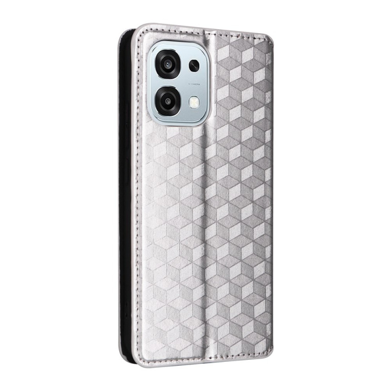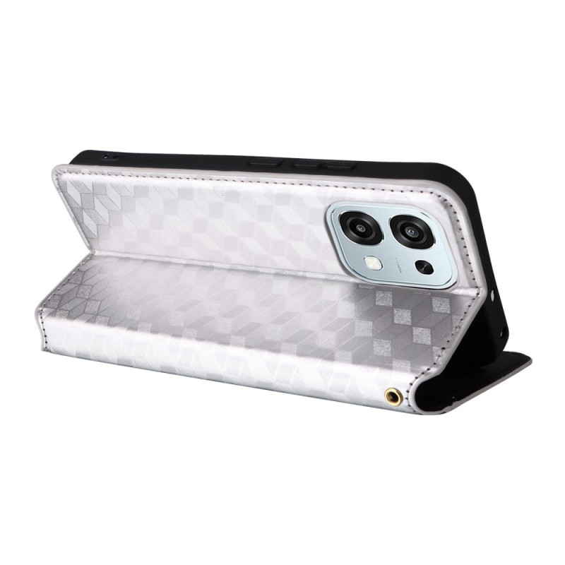 Capa de carteira elegante com padrão de diamante 3D para o seu Oppo A6 Pro 5G . Design funcional com 2 ranhuras para cartões, suporte de visualização ajustável e fecho magnético. Proteção total de 360° contra riscos e quedas.