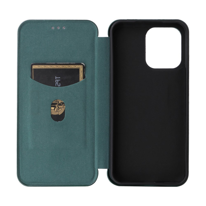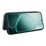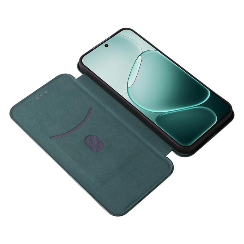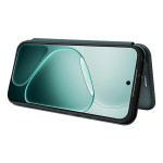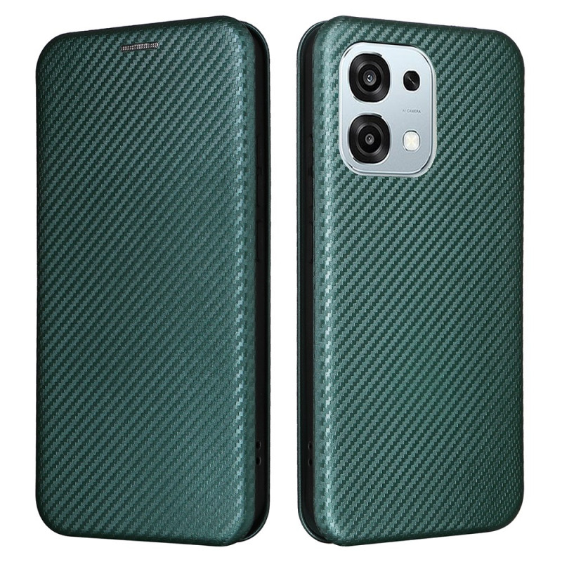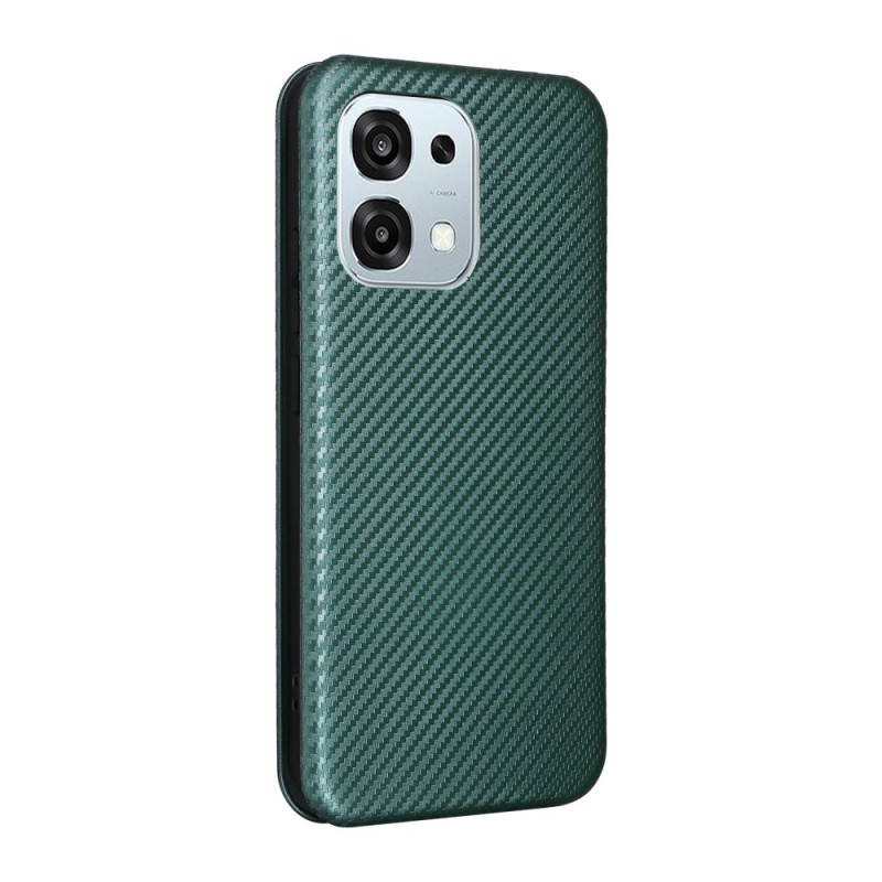 Capa elegante em pele PU com textura de fibra de carbono para o Oppo A6 Pro 5G / 4G. Proteção robusta de camada dupla contra choques e quedas. Inclui um suporte para cartões integrado e um fecho magnético seguro para uma utilização prática no dia a dia.