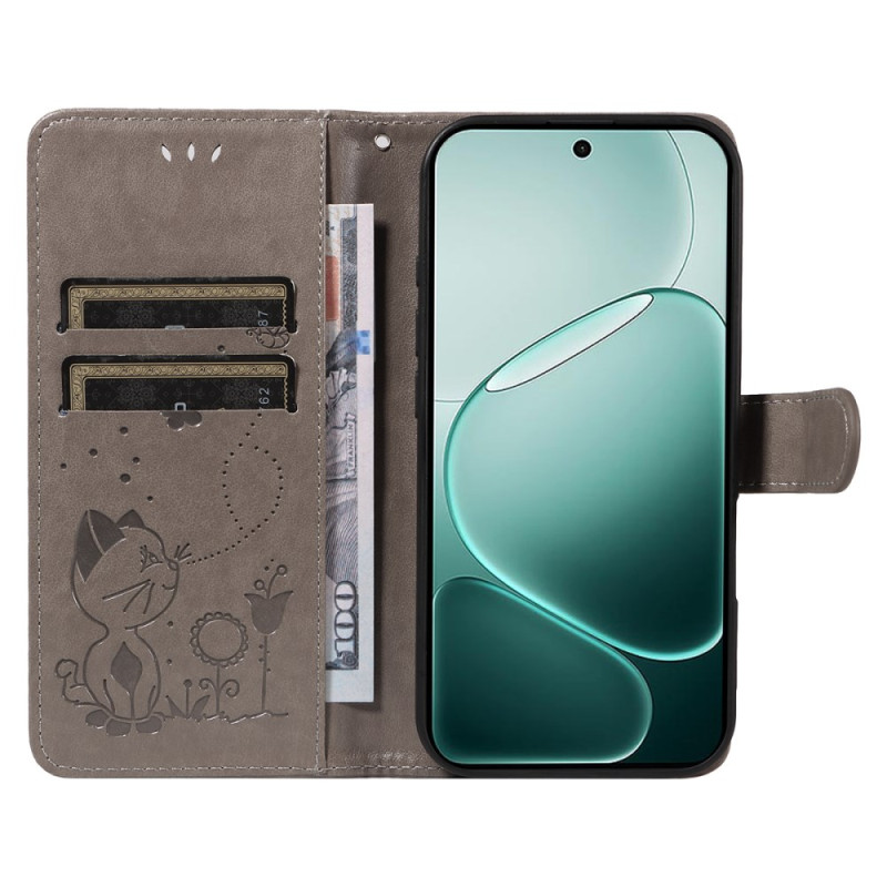 Protégez votre Oppo A6 Pro 5G avec élégance grâce à cet étui portefeuille en cuir PU premium. Son design raffiné arbore un motif chat et abeille unique, tandis que ses fonctionnalités pratiques incluent des emplacements pour cartes et un support.