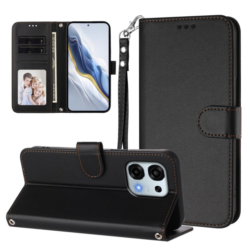 Capa de carteira elegante para o Oppo A6 Pro 5G com 3 ranhuras para cartões, suporte para mãos livres e uma prática correia de mão. Proteção completa contra choques e quedas do dia a dia.