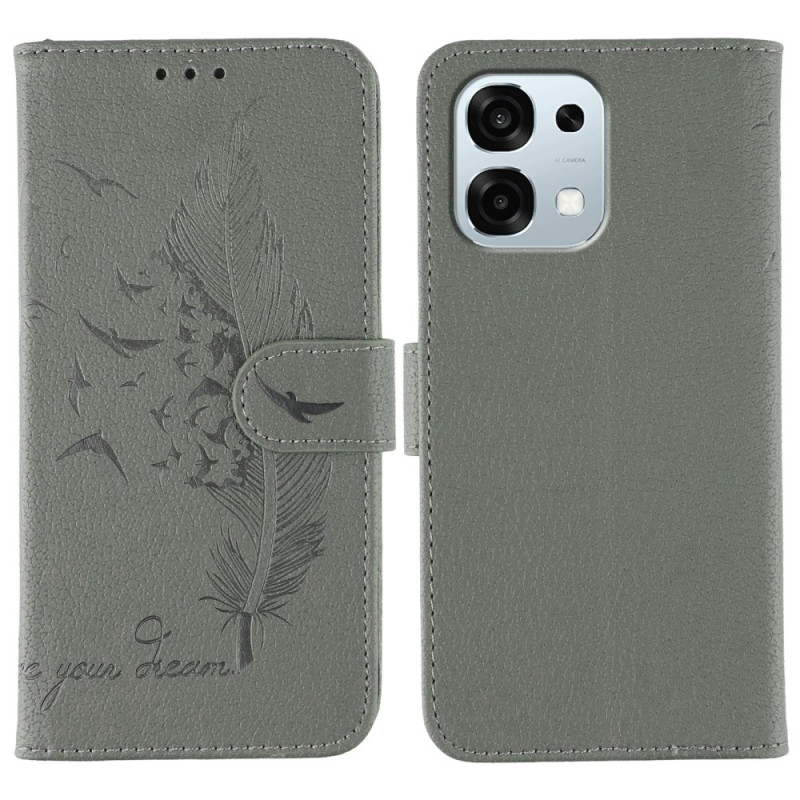 Descubra esta elegante capa de carteira para o Oppo A6 Pro 5G com o seu design sofisticado e motivo de penas. Fabricada em pele PU texturada e TPU, tem um toque agradável e um aspeto luxuoso. Desfrute de um suporte ajustável para visualizar os seus conteúdos.