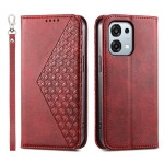 Capa elegante com textura de pele de vitelo para o seu Oppo A6 Pro 5G / 4G. Design sofisticado com padrão de diamante, ranhuras para cartões integradas e compartimento para dinheiro. Fecho magnético seguro, função de suporte e alça de mão prática incluída.