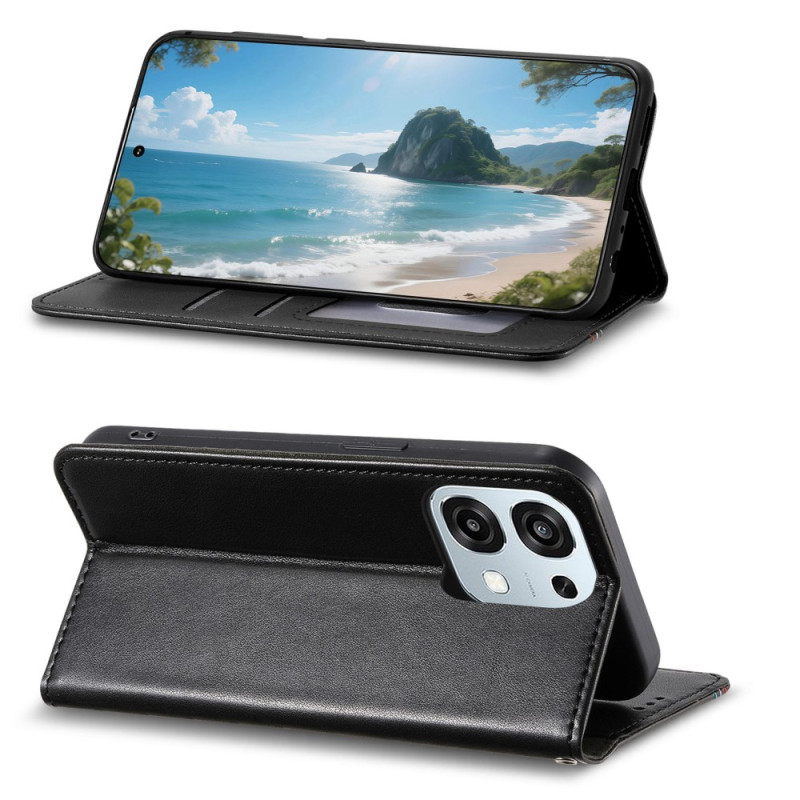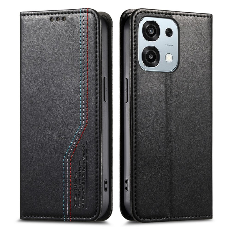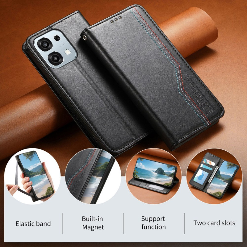 Descubra esta elegante capa de carteira para o Oppo A6 Pro 5G Com uma costura tricolor distinta, combina estilo e praticidade com as suas 2 ranhuras para cartões, suporte de visualização integrado e fecho magnético seguro...