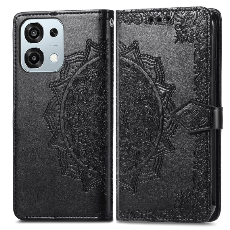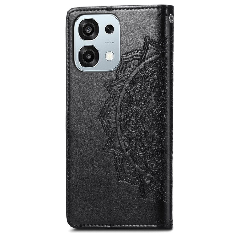 Capa de carteira elegante com padrão de mandala em relevo para o seu Oppo A6 Pro 5. Inclui 3 ranhuras para cartões, um bolso para notas e um suporte integrado para visualização em mãos-livres. Proteção óptima com fecho magnético seguro.
