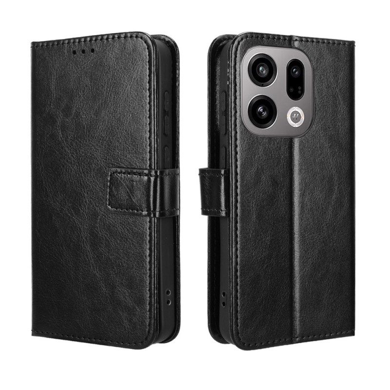 Capa elegante em pele PU com textura de cavalo louco para o Oppo Find X9 5G. Com 3 ranhuras para cartões, um compartimento para notas e uma prática correia de pulso. Fecho magnético seguro e função de suporte mãos-livres para um conforto ótimo na utilização diária.