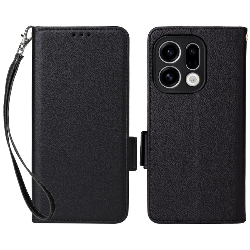 Capa tipo carteira elegante para o Oppo Find X9 5G em couro PU texturado. Com função de suporte, fecho magnético e alça de mão prática. Guarde cartões e dinheiro em segurança enquanto protege o seu telemóvel todos os dias.