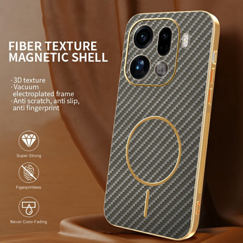 Proteja o seu Oppo Find X9 Pro 5G com estilo com esta capa em TPU com textura de fibra de carbono. O seu acabamento eletrolítico premium oferece uma resistência excecional a choques e riscos, ao mesmo tempo que repele as impressões digitais.