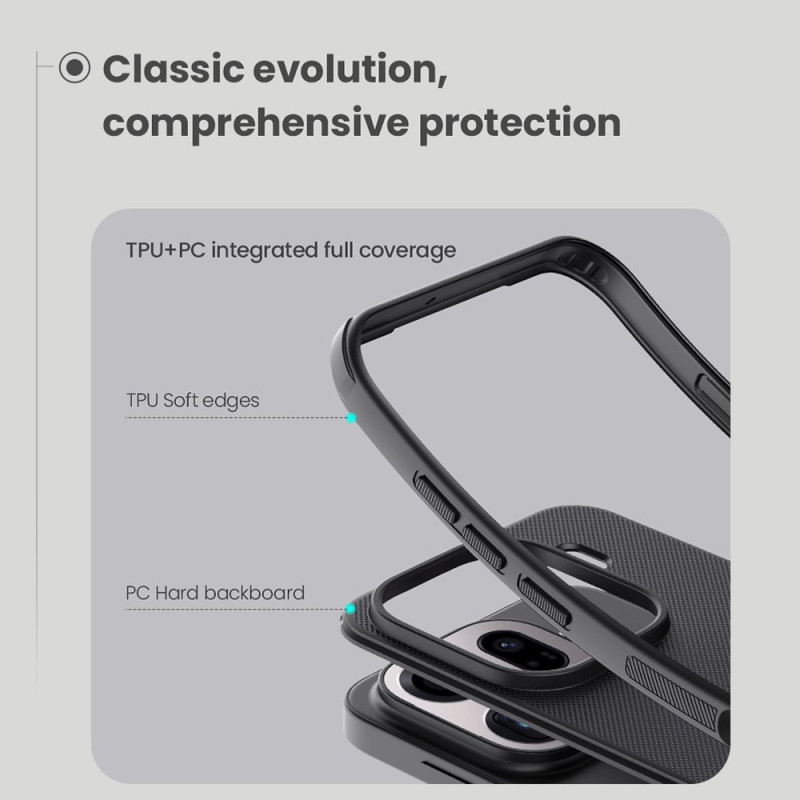 Descubra a capa NILLKIN Frosted Shield Pro, que combina a máxima proteção e elegância. A sua dupla proteção rígida e flexível protege o seu Oppo Find X9 Pro 5G dos choques do dia a dia. Superfície mate anti-riscos para um aspeto impecável.