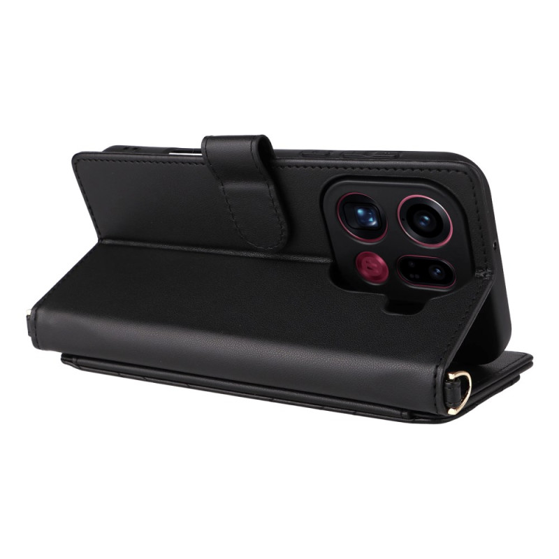 Proteja o seu Oppo Find X9 Pro 5G com estilo com esta capa multifunções para carteira. Com 6 ranhuras para cartões, um suporte ajustável e alças de ombro amovíveis, combina praticidade com proteção total para utilização diária.