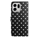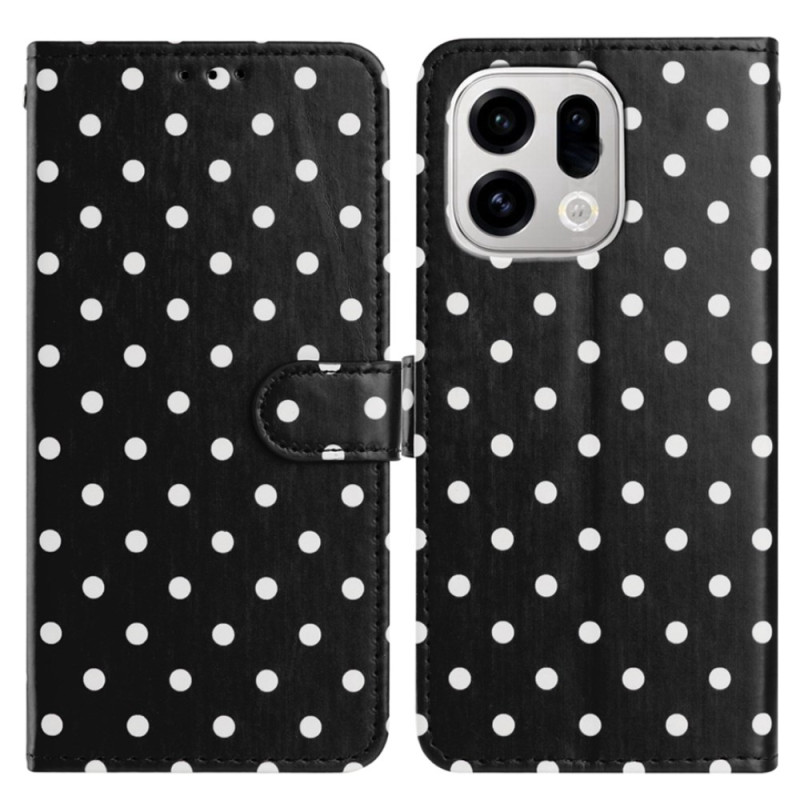 Capa tipo carteira elegante com padrão de bolinhas para o Oppo Find X9 Pro 5G. Design folio com suporte ajustável, 3 ranhuras para cartões e fecho magnético seguro. Proteção total contra riscos e choques em pele PU de alta qualidade.