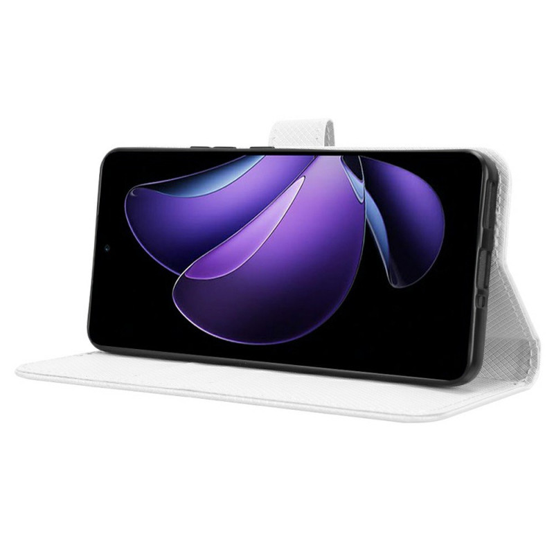 Descubra a nossa elegante carteira em pele PU para o Oppo Reno 13F 4G / 5G / FS 5G. Combinando estilo e funcionalidade, oferece uma proteção completa com a sua textura única de diamante, ranhuras para cartões, bolso para notas e fecho magnético.