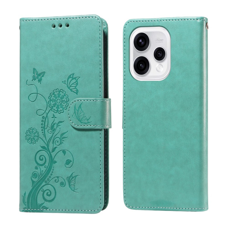 Descubra a nossa elegante capa de couro PU para carteira para o Oppo Reno 15 5G. Design requintado com impressão de borboletas e flores, função de suporte integrada, várias ranhuras para cartões e proteção completa para o seu smartphone todos os dias.