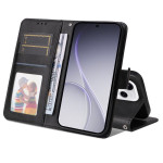 Capa elegante para carteira em pele PU com textura de vitelo e revestimento TPU robusto. Design multifuncional com ranhuras para cartões, suporte para visualização em mãos-livres, fecho magnético seguro e alça de mão prática. Proteção total de 360° contra choques e riscos.