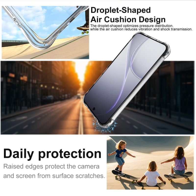 Proteja o seu Oppo Reno 15 5G com esta inovadora capa transparente. Com almofadas de ar nos quatro cantos para uma óptima absorção de choques, oferece uma proteção completa, preservando a elegância do seu telefone.