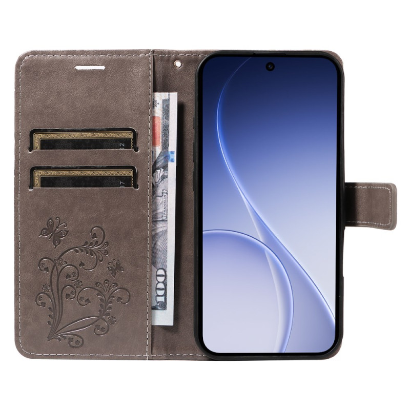 Estojo elegante em pele PU de primeira qualidade com motivos de borboletas impressos. Possui ranhuras para cartões, compartimento para notas e função de suporte mãos-livres. Inclui uma prática alça de mão para um transporte seguro e fácil.