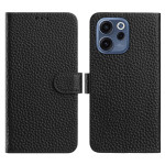Capa elegante em pele genuína com textura de lichia para o Oppo Reno 15 F 5G. Inclui um suporte ajustável, 3 ranhuras para cartões, bolso para dinheiro e fecho magnético seguro. Óptima proteção contra quedas.