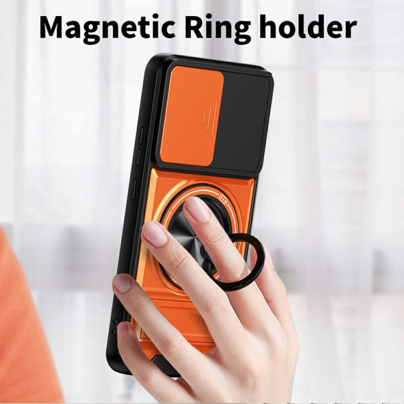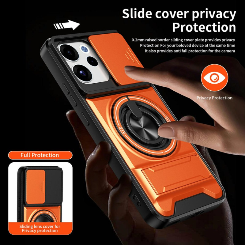 Protégez votre Oppo Reno 15 F 5G avec cette coque magnétique innovante. Elle combine une double protection renforcée, un anneau support rotatif 360°, un support pliable pour visionnage mains libres et une protection caméra coulissante unique.