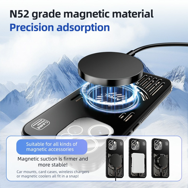 Capa magnética de elevado desempenho para o Oppo Reno 15 Pro 5G com sistema avançado de dissipação de calor. Design oco inovador para uma óptima circulação de ar. Anel magnético N52 integrado para uma fixação estável. Proteção completa com almofadas anti-choque nos cantos.