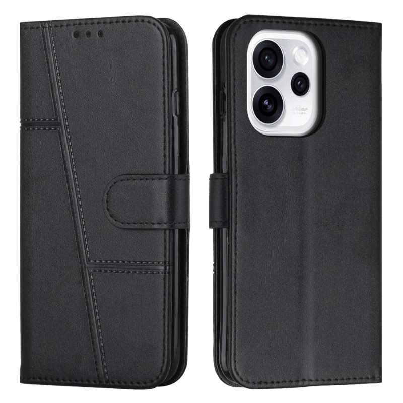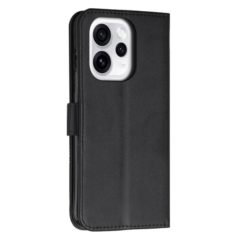 Capa elegante em pele PU para carteira para o Oppo Reno 15 Pro 5G. Design sofisticado com textura em relevo, 2 ranhuras para cartões, 1 suporte para fotografias e 1 compartimento para notas. Suporte dobrável integrado para visualização em mãos-livres e fecho magnético seguro.