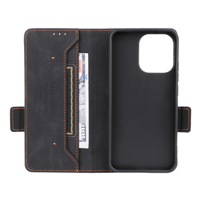 Capa elegante para carteira em pele PU com decoração metálica requintada. Com compartimentos para cartões e dinheiro, suporte de visualização multi-ângulo e proteção total com fecho magnético. Combina estilo e funcionalidade para uma utilização quotidiana.