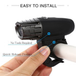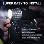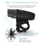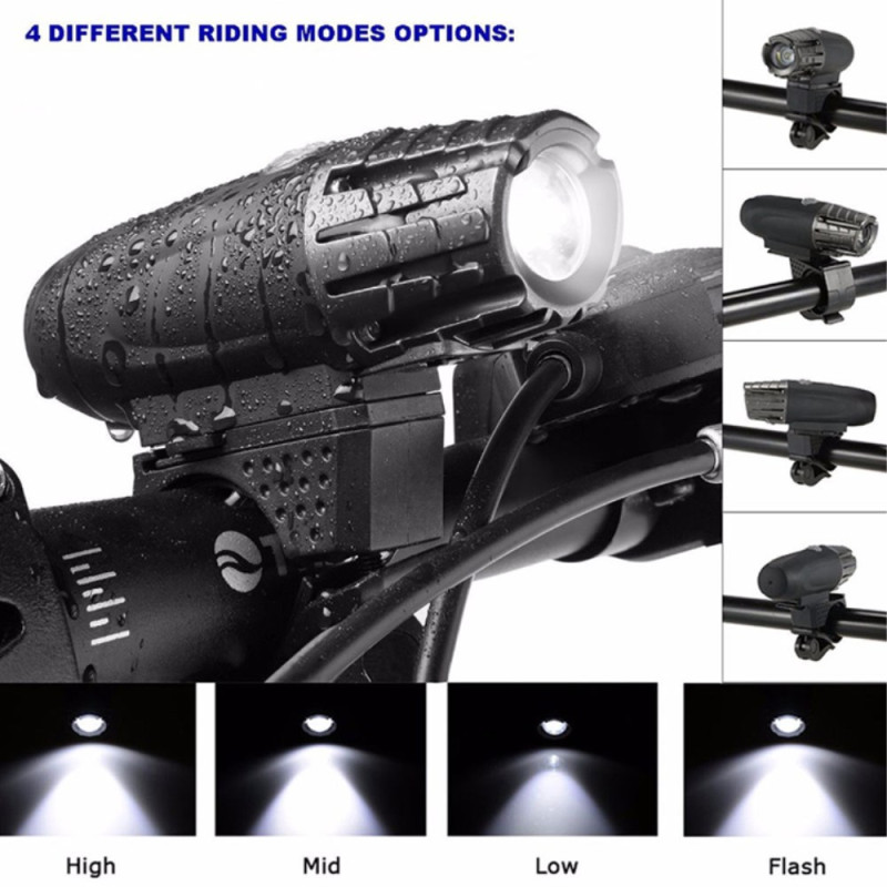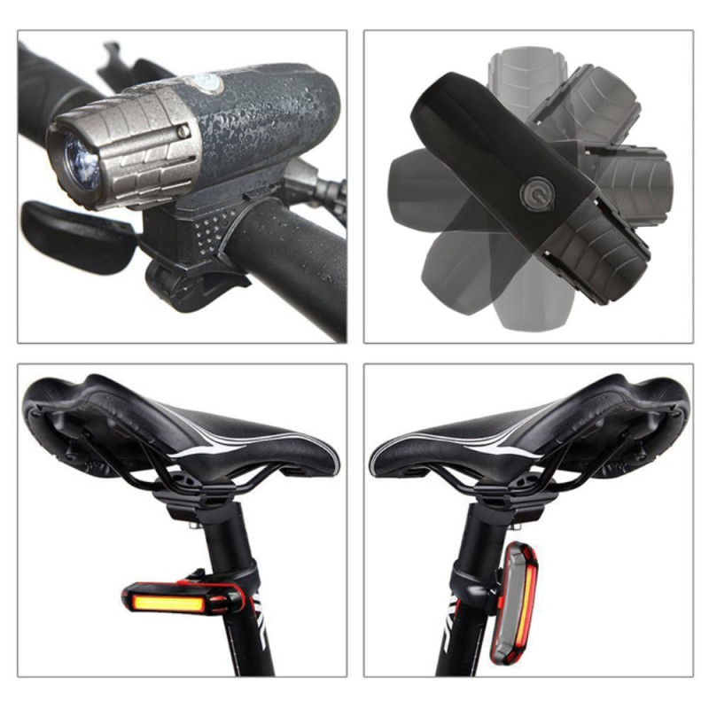 A visibilidade máxima é essencial para a segurança dos ciclistas, independentemente das condições climatéricas ou da hora do dia. Este kit de iluminação LED fornece 400 lúmenes de potência, iluminando eficazmente a estrada durante mais de 15 metros. As unidades dianteira e traseira são recarregáveis através de USB, eliminando a necessidade de substituir as pilhas. A certificação IPX5 garante uma proteção fiável contra salpicos de água e chuva. O farol dianteiro oferece 4 modos de iluminação, enquanto o farol traseiro oferece 5, permitindo uma adaptação precisa ao ambiente. O suporte giratório de 360 graus garante um alinhamento perfeito do feixe de luz.