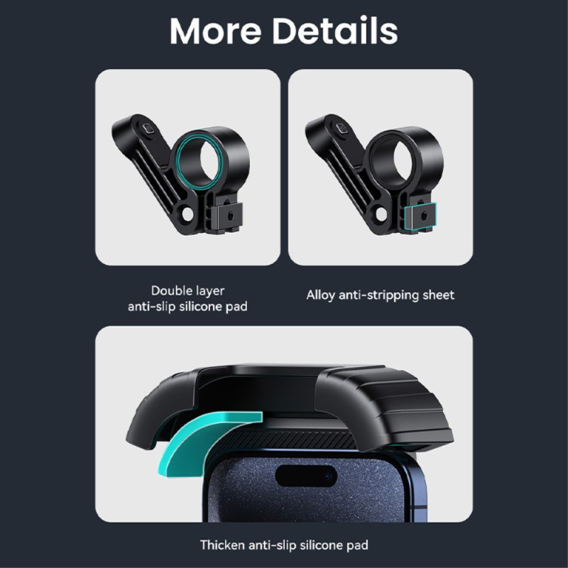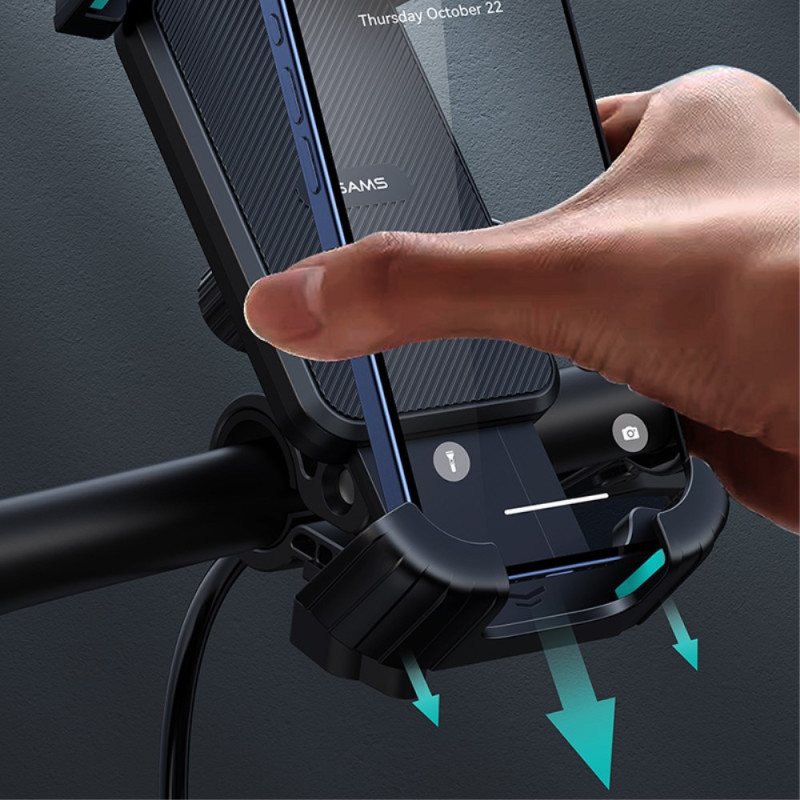 O acesso imediato à navegação e a segurança são assegurados por este suporte USAMS, concebido para resistir aos solavancos da estrada. O mecanismo de bloqueio com um clique garante a fixação imediata do smartphone (4,7 a 6,7 polegadas) ao guiador, sem risco de se soltar. Fabricado em PC e silicone, oferece durabilidade e absorção de vibrações. A sua cabeça giratória de 360 graus permite um ajuste ótimo do ângulo de visão, e o seu design inteligente preserva o acesso aos botões e funções do ecrã.