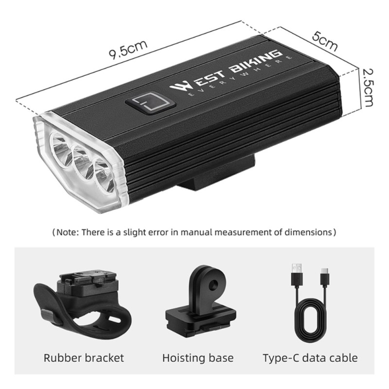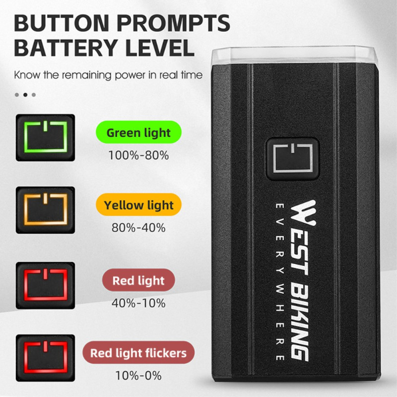A iluminação fiável e a resistência a condições extremas estão no centro do design desta lâmpada WEST BIKING. O seu invólucro em liga de alumínio garante uma dissipação de calor eficaz e uma maior durabilidade, tornando-a pronta a enfrentar quaisquer condições climatéricas graças à sua classificação IPX6 à prova de água. Com 1000 lúmenes, garante uma visibilidade clara a longas distâncias, essencial para a segurança nocturna. A sua bateria de 4400mAh oferece uma autonomia alargada, complementada por cinco modos de iluminação (incluindo SOS) para se adaptar a qualquer situação. O sistema de encaixe rápido torna a instalação simples e cómoda.